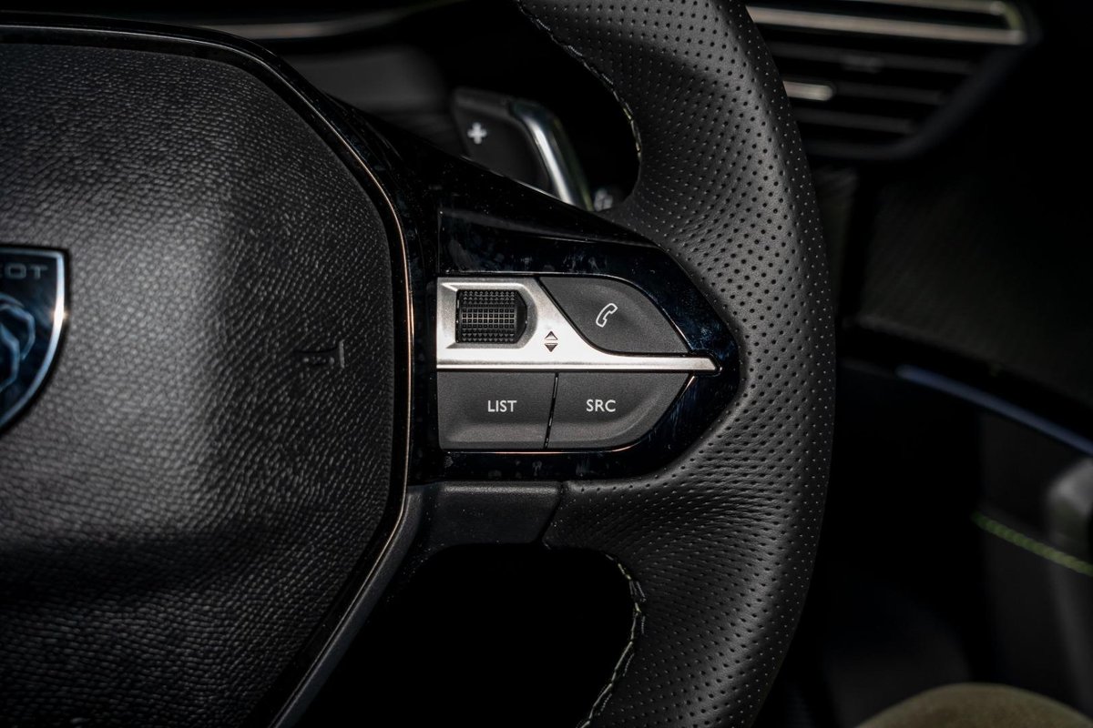 - Interior: 10-inch Peugeot i-Connect Touchscreen with Wireless Apple CarPlay and Android Auto, Fully Digital 3D i-Cockpit Instrument Display, Premium Leather and Alcantara Upholstery with Contrast Stitching, Heated Front Seats, Dual-Zone Climate Control, Wireless Phone Charging, Ambient Interior Lighting, and Smart Entry with Push-Button Start, Electric Sunroof