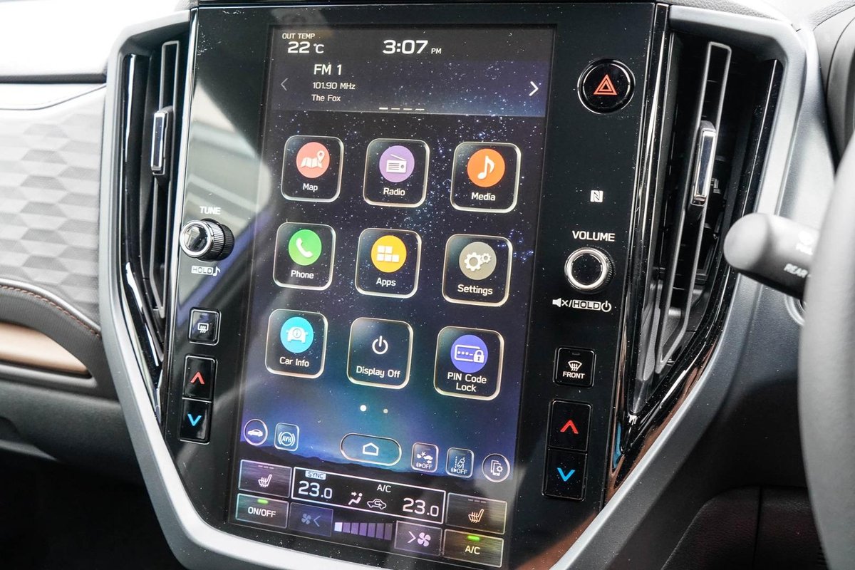 - Safety: Subaru EyeSight Driver Assist System, Adaptive Cruise Control, Autonomous Emergency Braking, Lane Keep Assist, Blind Spot Monitoring, Rear Cross Traffic Alert, Driver Monitoring System, Rear Parking Sensors, Surround View Camera, ISOFIX Child Seat Anchors, 9 Airbags