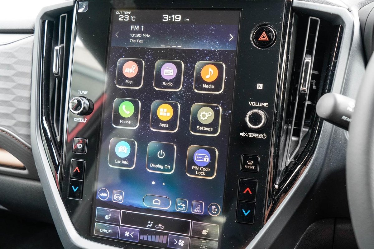 - Safety: Subaru EyeSight Driver Assist System, Adaptive Cruise Control, Autonomous Emergency Braking, Lane Keep Assist, Blind Spot Monitoring, Rear Cross Traffic Alert, Driver Monitoring System, Rear Parking Sensors, Surround View Camera, ISOFIX Child Seat Anchors, 9 Airbags