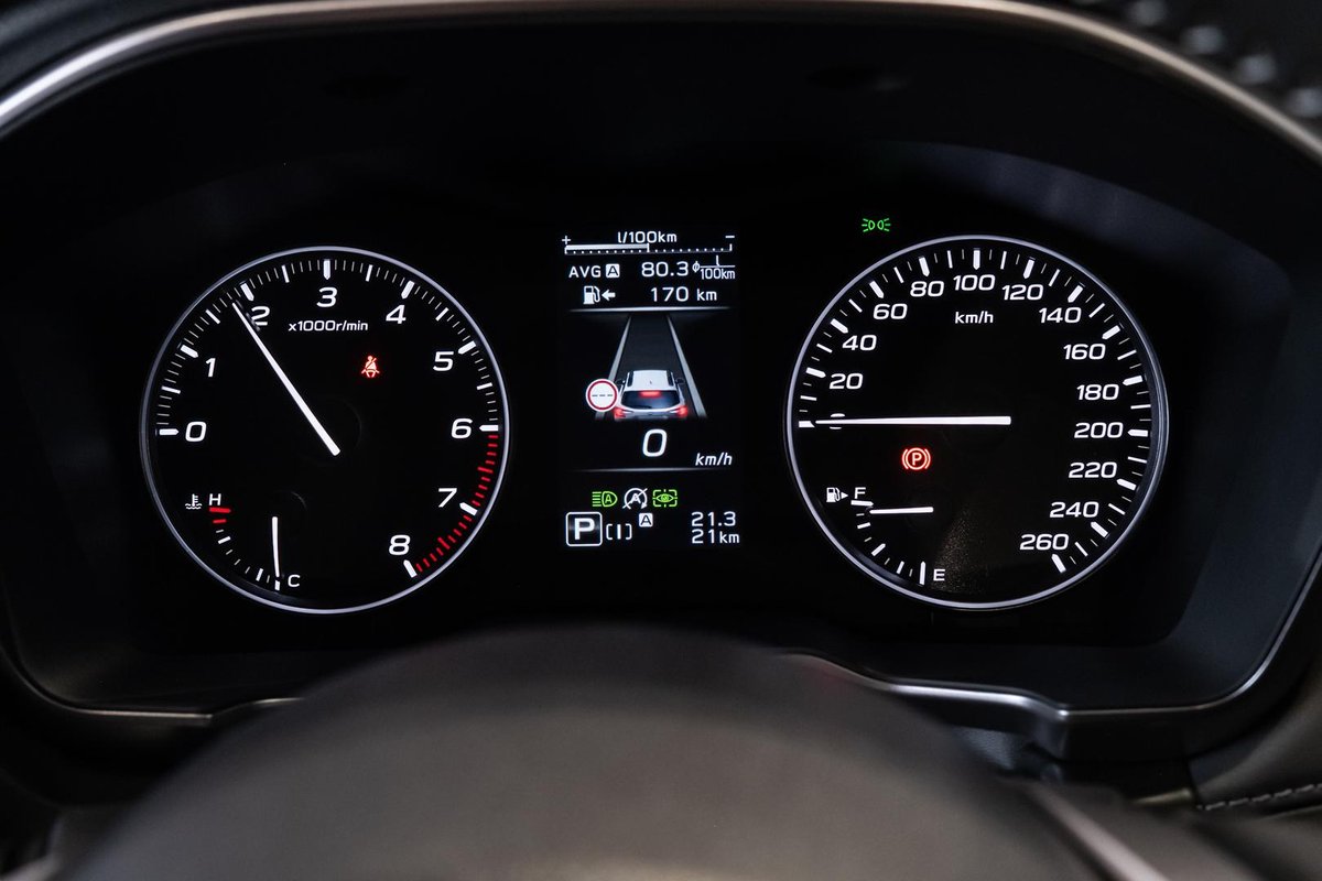 - Safety: Subaru EyeSight Driver Assist System, Autonomous Emergency Braking, Adaptive Cruise Control, Lane Keep Assist, Lane Departure Warning, Blind Spot Monitoring, Rear Cross Traffic Alert, Driver Monitoring System, Front & Rear Parking Sensors, Reversing Camera, 7 Airbags, ISOFIX Child Seat Anchors