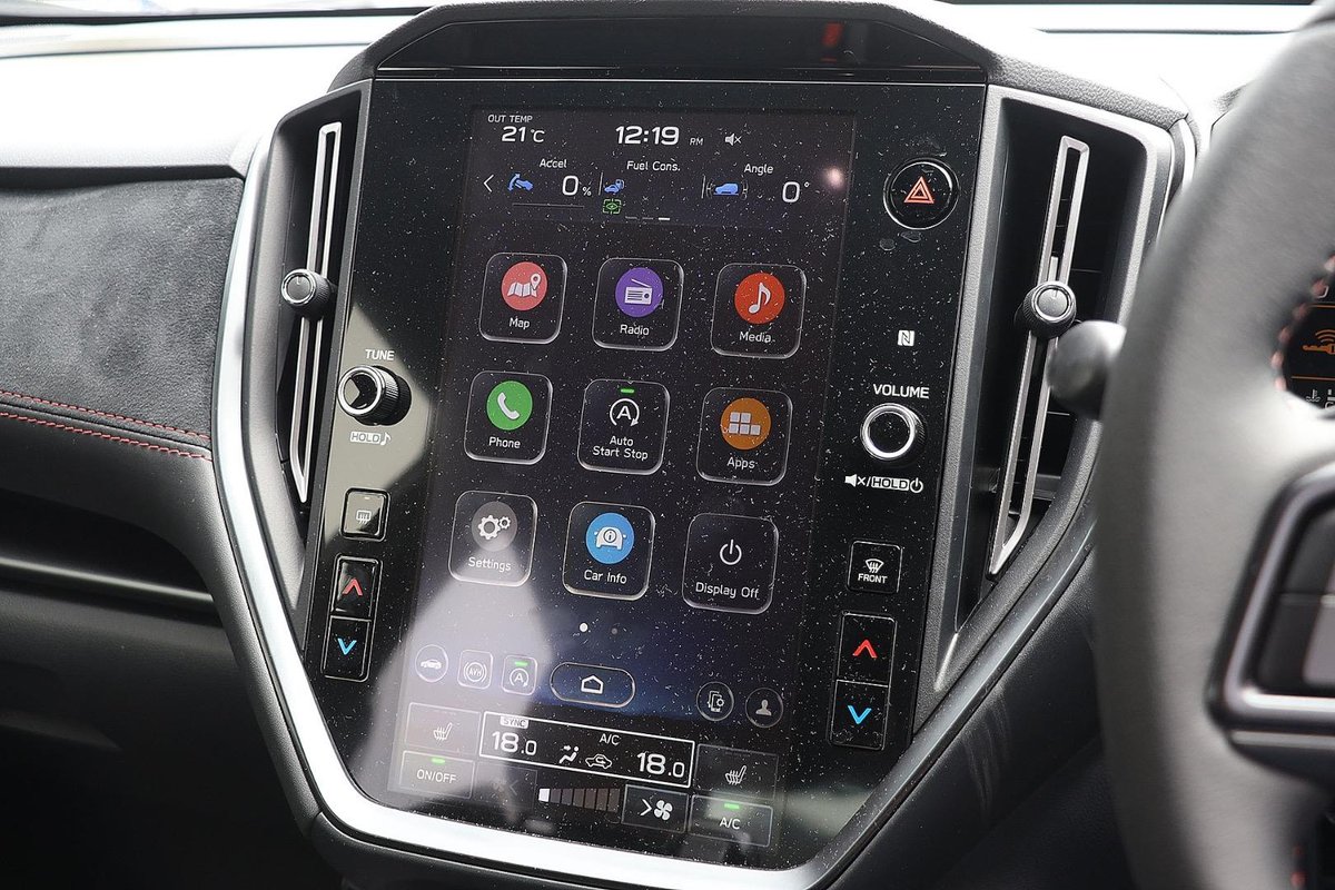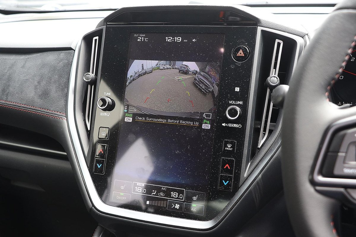 - Interior: Ultrasuede-Trimmed Seats with Red Stitching, Heated Seats, Touchscreen Infotainment with Wireless Apple CarPlay & Android Auto, Dual-Zone Climate Control, Drive Mode Select, Leather-Wrapped Steering Wheel, Smart Key Entry with Push-Button Start, Electric Sunroof, Premium Cabin Finish with STI-Inspired Details