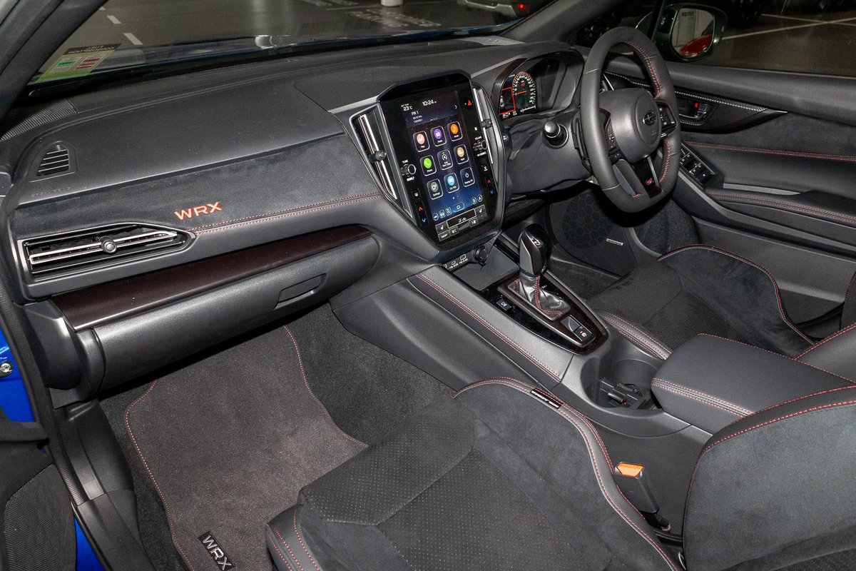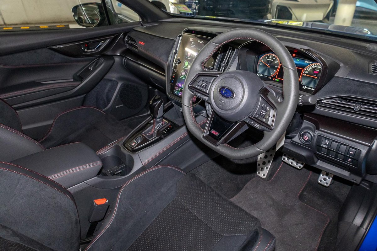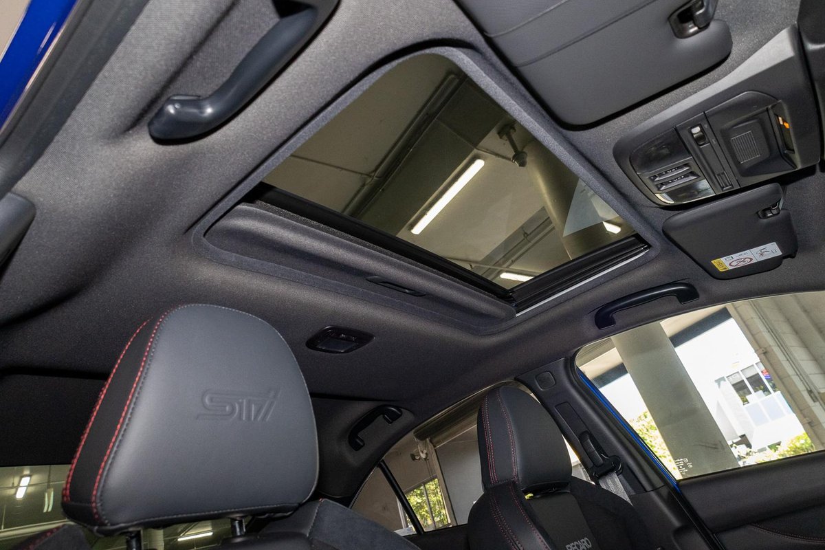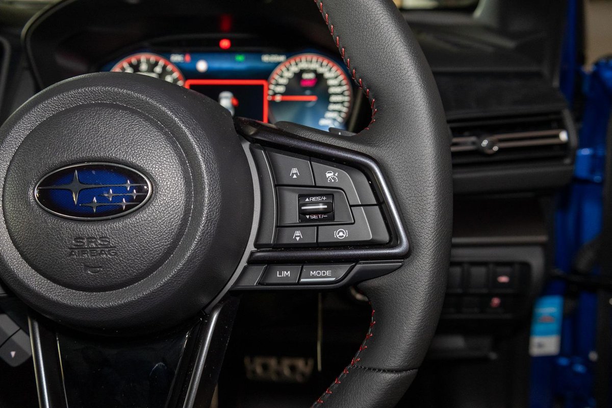 - Interior: Ultrasuede-Trimmed Seats with Red Stitching, Heated Seats, Touchscreen Infotainment with Wireless Apple CarPlay & Android Auto, Dual-Zone Climate Control, Drive Mode Select, Leather-Wrapped Steering Wheel, Smart Key Entry with Push-Button Start, Electric Sunroof, Premium Cabin Finish with STI-Inspired Details