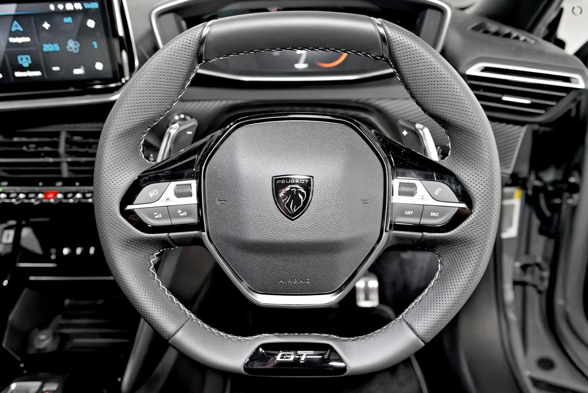 - Interior: 10-inch Peugeot i-Connect Touchscreen with Wireless Apple CarPlay and Android Auto, Fully Digital 3D i-Cockpit Instrument Display, Premium Leather and Alcantara Upholstery with Contrast Stitching, Heated Front Seats, Dual-Zone Climate Control, Wireless Phone Charging, Ambient Interior Lighting, and Smart Entry with Push-Button Start, Electric Sunroof
