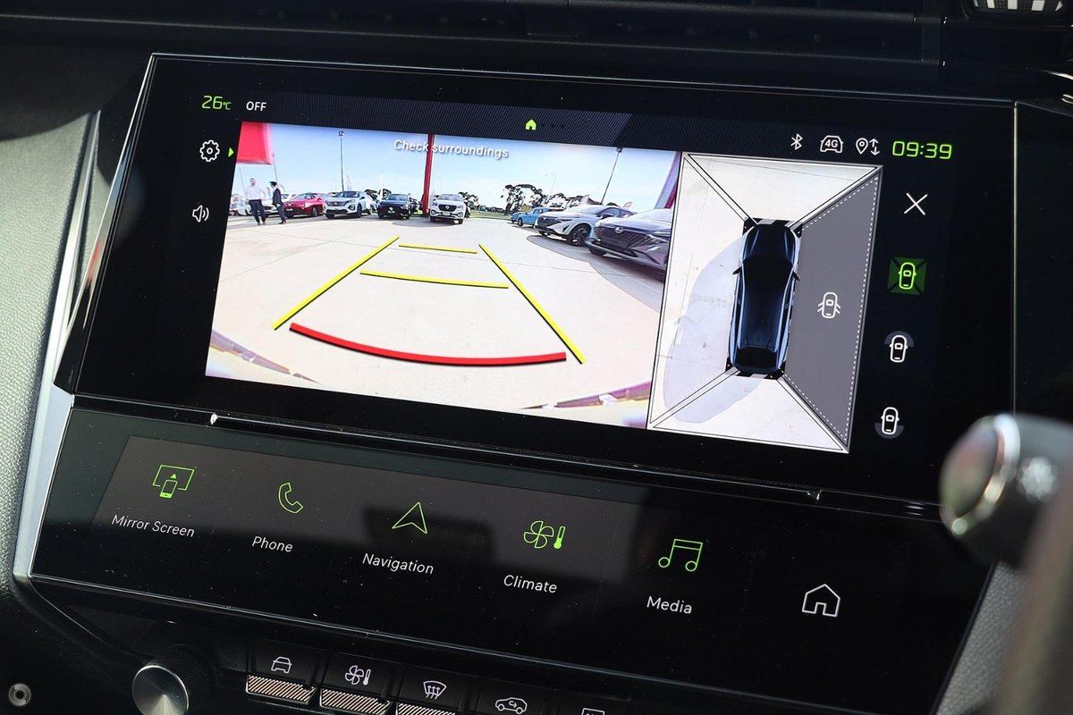- Interior: Touchscreen with Peugeot i-Connect Advanced, Wireless Apple CarPlay and Android Auto, 10-Speaker Premium Audio System, 3D Digital i-Cockpit Instrument Cluster, Electrically Adjustable and Heated Front Seats with Alcantara and Leather Trim, Electric Sunroof, Ambient LED Cabin Lighting, Dual-Zone Climate Control, Wireless Phone Charging, and Smart Entry with Push-Button Start