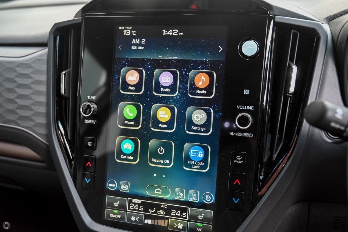 - Safety: Subaru EyeSight Driver Assist System, Adaptive Cruise Control, Autonomous Emergency Braking, Lane Keep Assist, Blind Spot Monitoring, Rear Cross Traffic Alert, Driver Monitoring System, Rear Parking Sensors, Surround View Camera, ISOFIX Child Seat Anchors, 9 Airbags