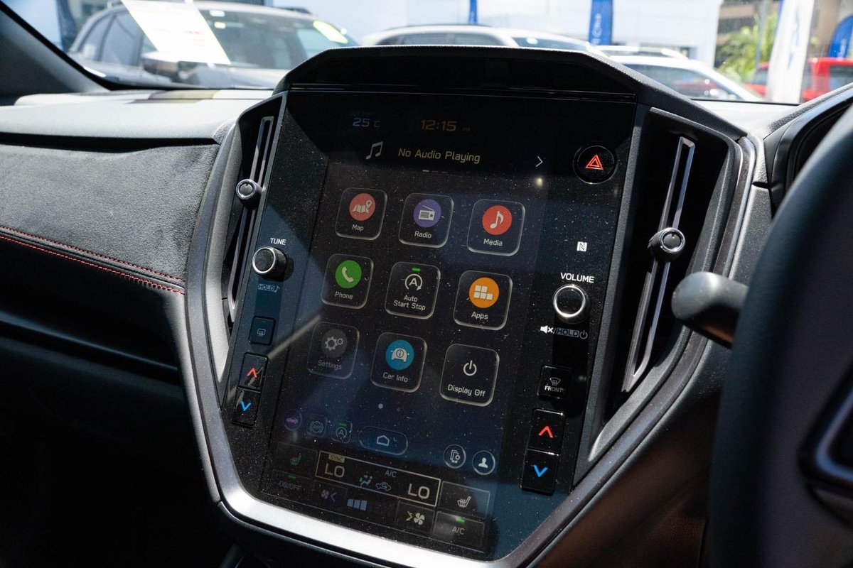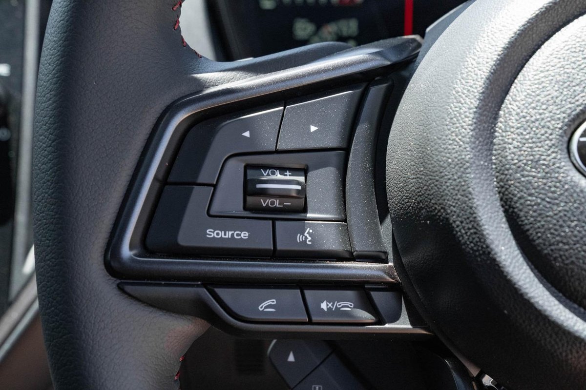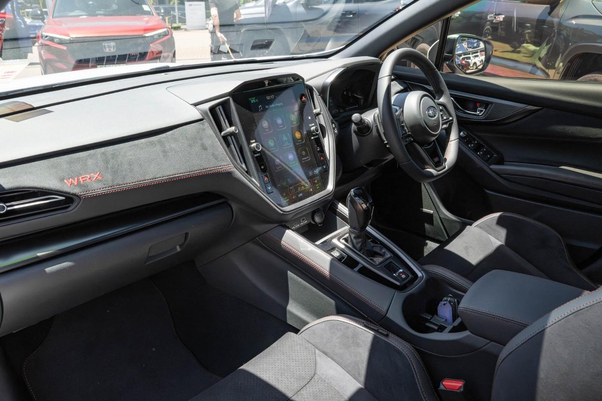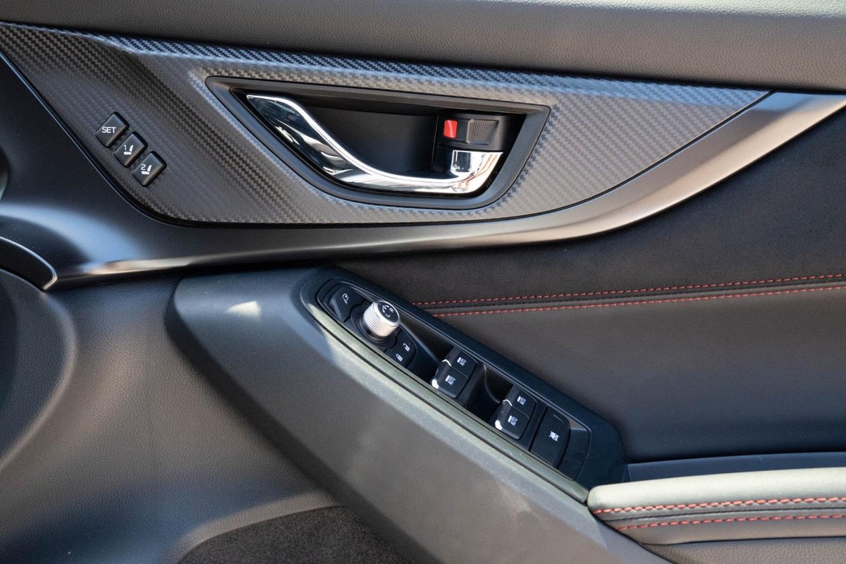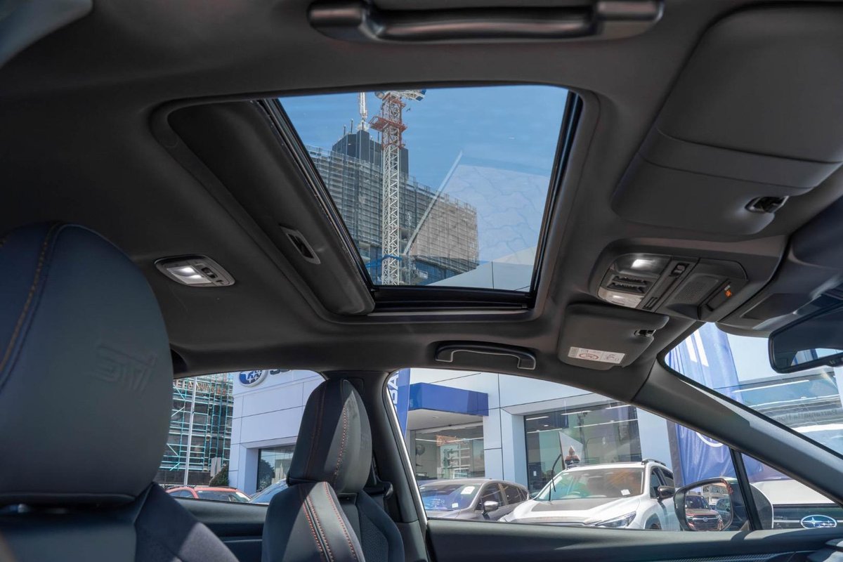 - Interior: Ultrasuede-Trimmed Seats with Red Stitching, Heated Seats, Touchscreen Infotainment with Wireless Apple CarPlay & Android Auto, Dual-Zone Climate Control, Drive Mode Select, Leather-Wrapped Steering Wheel, Smart Key Entry with Push-Button Start, Electric Sunroof, Premium Cabin Finish with STI-Inspired Details