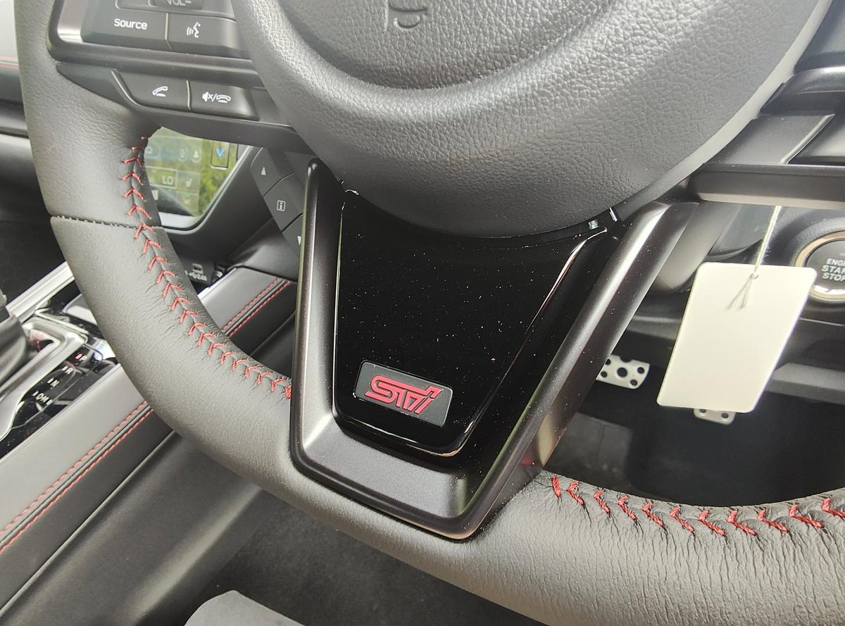 - Interior: Ultrasuede-Trimmed Seats with Red Stitching, Heated Seats, Touchscreen Infotainment with Wireless Apple CarPlay & Android Auto, Dual-Zone Climate Control, Drive Mode Select, Leather-Wrapped Steering Wheel, Smart Key Entry with Push-Button Start, Electric Sunroof, Premium Cabin Finish with STI-Inspired Details